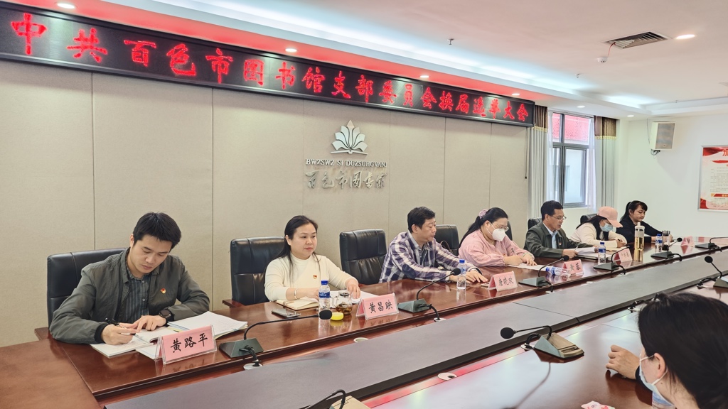 为进一步加强基层党组织建设,根据《中国共产党章程》和《中国共产党基层组织选举工作条例》有关规定,经局直属机关委员会批准,2025年12月1日,中共百色市图书馆支部委员会召开换届选举大会。会议由上一届党支部书记卢林春主持。局直属机关委员会专职副书记黄蓉同志到会现场指导,百色市图书馆馆长覃伟列席会议。市图书馆全体党员参加了会议。